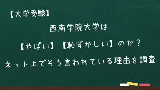 西南学院大学がやばい、恥ずかしいと言われている理由を知りたくありませんか?「やばい」という言葉には、ネガティブな意味だけでなく、ポジティブな驚きを表すこともあります。本記事では、西南学院大学について、なぜ「やばい」「恥ずかしい」と言われているのかを冷静に分析し、ネットの噂の真偽や実態を考察していきます。