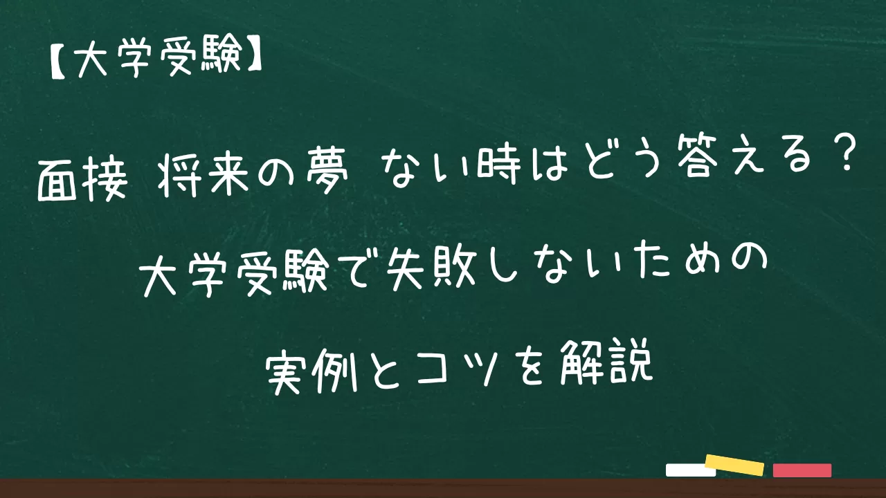 大学入試の面接で頻繁に尋ねられる質問の一つが「将来の夢はありますか?」です。