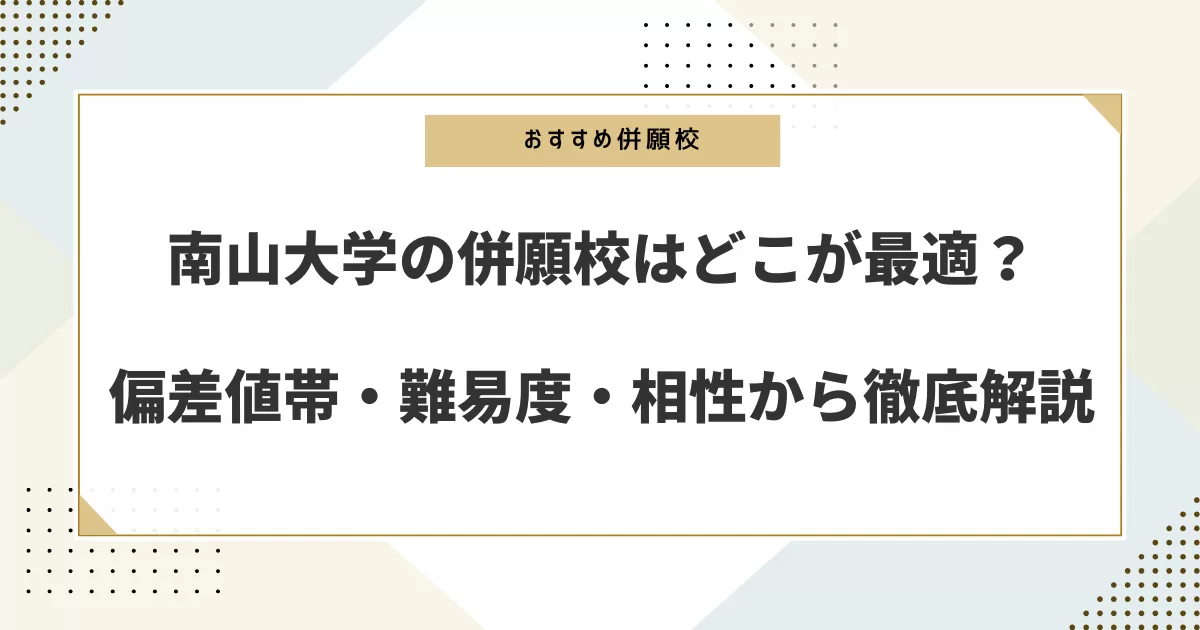 本記事では、南山大学の偏差値や学部ごとの難易度を踏まえながら、最適な併願校を学部別にわかりやすく解説します。