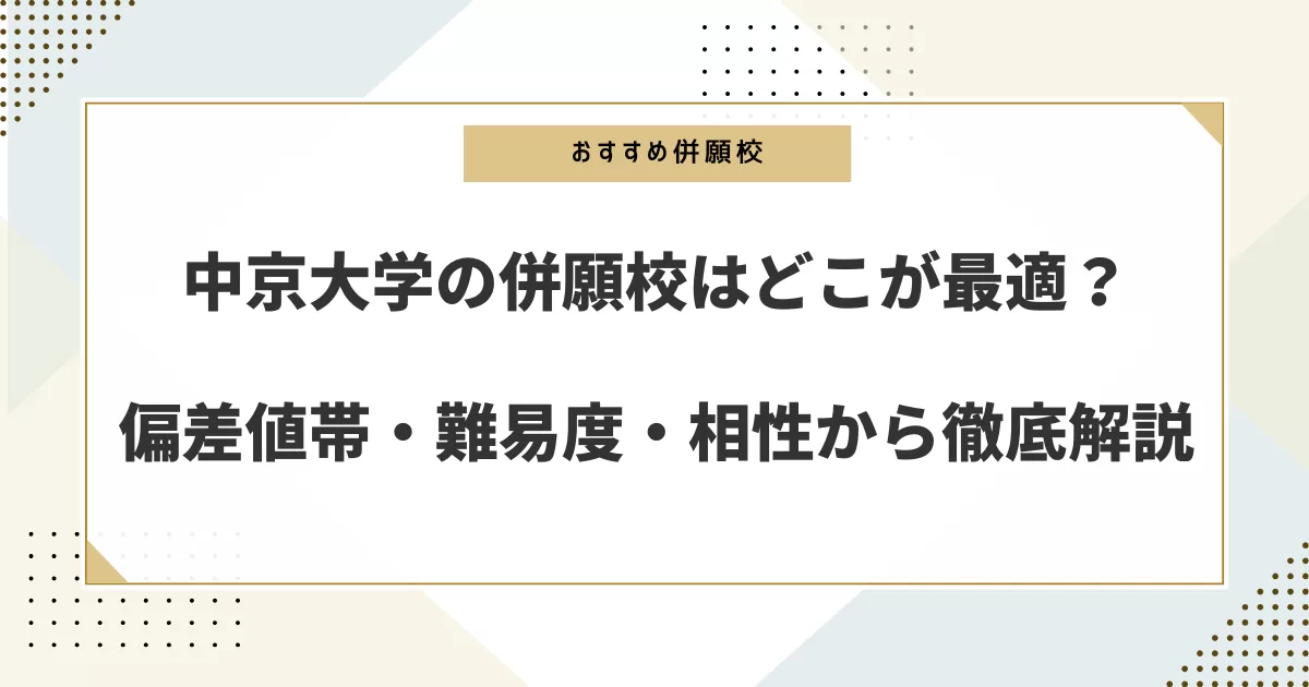 中京大学の併願校はどこが最適?偏差値・難易度・学部別相性まで徹底解説