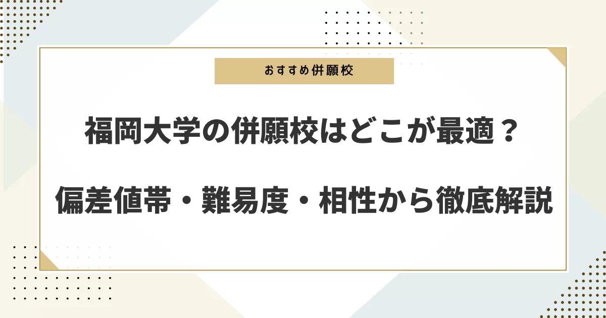 ■ 福岡大学の併願は「西南学院大学(上位)→ 同レベル → 安全校」の三段構えが基本
