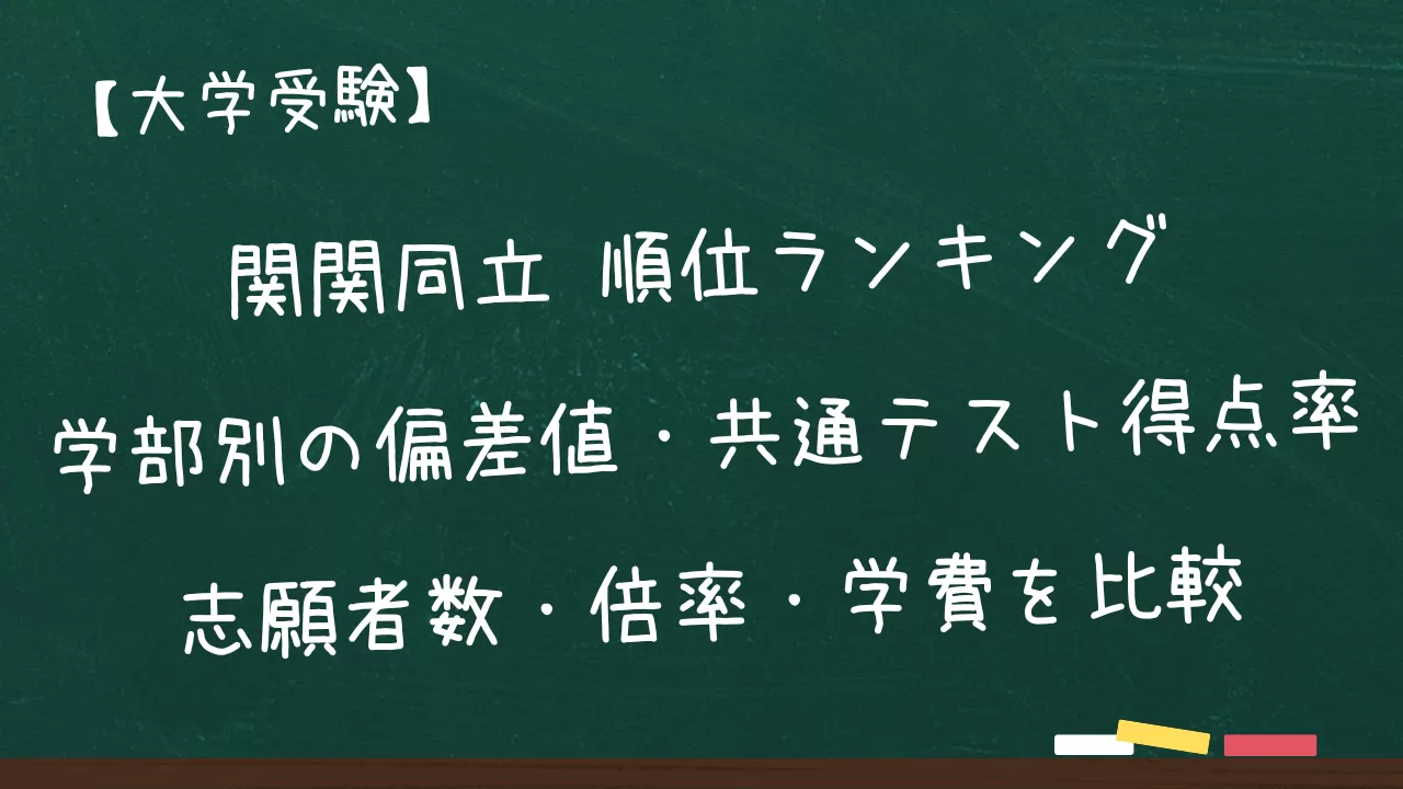 関関同立 順位ランキング|学部別の偏差値・共通テスト得点率・志願者数・倍率・学費を比較