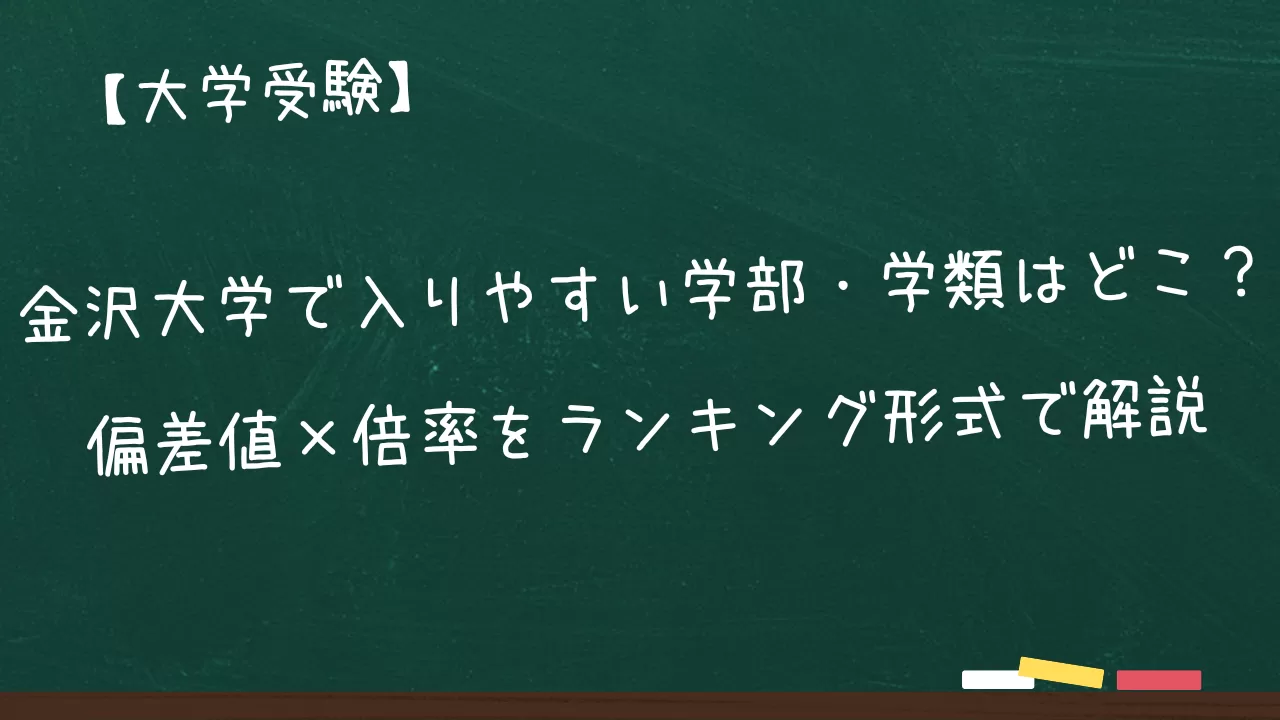 そんな方向けに、偏差値(ボーダー)と実質倍率の両面から、金沢大学の“入りやすさ”をランキング形式で整理します。